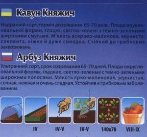 Надранній сорт, термін дозрівання 65-70 днів. Плоди опукло-овальної форми, гладкі, світло-зелені з темно-зеленими широкими смугами. М’якоть яскраво-малинова, зерниста, соковита, ніжна й дуже солодка. Стійкий до грибкових захворювань.