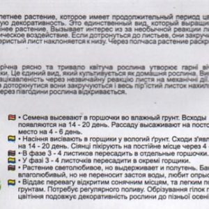 Mimosa pudica. Многолетнее травянистое растение, высотой 30-40 см. Цветы в виде шаровидных пушистых соцветий, диаметром около 2 см, лилово-розовой окраски, украшают растение с июня до сентября. Мимоза очень чувствительна к механическим повреждениям, при малейшем прикосновении опускает веточки и скручивает свои листочки. Выращивается посевом семян в горшки в феврале — апреле, на постоянное место растение пересаживают в мае-июне. Предпочитает теплые помещения, интенсивное освещения и повышенную влажность воздуха. Требует регулярных поливов. Используется для украшения комнатных и садовых вазонов.