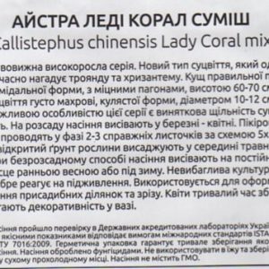 Астра китайская Леди Корал (Callistephus chinensis Lady Coral). Удивительная высокорослая серия. Новый тип соцветия, который одновременно напоминает розу и хризантему. Куст правильной пирамидальной формы, с крепкими побегами, высотой 60-70 см. Соцветия густомахровые, шаровидной формы, диаметром 10-12 см. Важной особенностью этой серии является исключительная плотность соцветий. На рассаду семена высевают в марте — апреле. Пикировку проводят в фазе 2-3 настоящих листочков по схеме 5×5. В открытый грунт растения высаживают в середине мая. При безрассадном способе семена высевают на постоянное место ранней весной или под зиму. Неприхотливая культура, хорошо реагирует на подкормки. Используется для оформления приусадебных участков и среза. Цветы длительное время сохраняют декоративность в вазе.