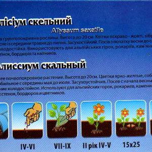 Многолетнее растение, высотой 20-40см. Цветки мелкие, жёлтой окраски, собраны в плотные, кистевидные соцветия. Семена высевают в открытый грунт в мае-июне. Цветение начинается в следующем году в апреле, и длится по июль, создавая прекрасный яркий вид. Растение