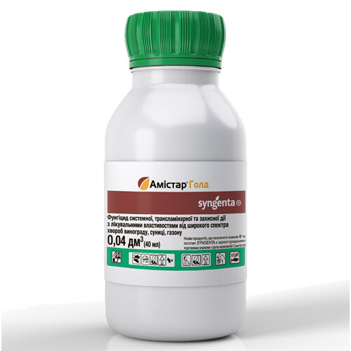 Амістар Голд 250 SC — фунгіцид із системною дією для застосування на винограді, полуниці, соняшнику, та цукровому буряку, має захисну і лікувальну дію.