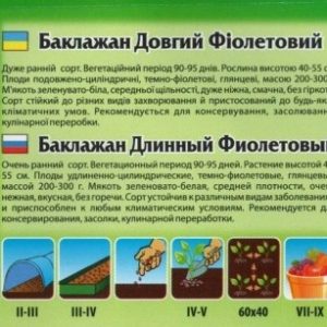 Дуже ранній сорт. Вегетаційний період 90-95 днів. Рослина висотою 40-55 см. Плоди подовжено-циліндричні, темно-фіолетові, глянцеві, масою 200-300 г. М’якоть зеленувато-біла, середньої щільності, дуже ніжна, смачна, без гіркоти. Сорт стійкий до різних видів захворювання й пристосований до будь-яких кліматичних умов. Рекомендується для консервування, засолювання, кулінарної переробки.
