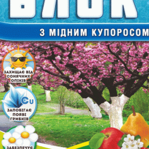 БЛОК побелка защитная садовая с медным купоросом — содержание сульфата меди обеспечивает профилактику грибковых заболеваний деревьев, дезинфицирует повреждения и ускоряет заживление коры. Порядок применения: Очистки ствола и ветвей На стволах и крупных ветвях деревьев за вегетационный период образуются слои растресканной и отмершей коры, за которой скрывается множество вредителей (яйца, личинки, куколки, взрослые особи вредных насекомых, клещи, споры грибов-паразитов). Такую кору нужно счищать специальным скребком или проволочной щеткой сверху вниз. Чтобы паразиты не падали на землю и потом опять не заражали растение, под деревом расстилают какой то материал. По завершении работы мусор сжигают. Приготовление рабочего раствора Для приготовления побелки содержимое упаковки высыпать в емкость объемом не менее 6-ти литров. Растворить данную смесь в 2-х литрах воды и дать настояться не менее 30-ти минут. В зависимости от потребности в плотности побелки, тщательно перемешивая, довести объем рабочего раствора до 4-6