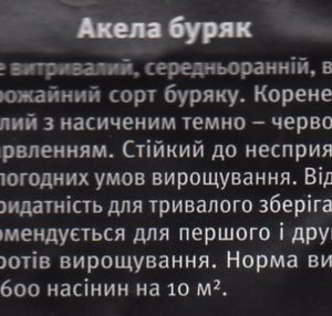 Акела – очень устойчивый, среднеранний, высокоурожайный сорт. Корнеплод с насыщенной темно – красной окраской. Устойчив к неблагоприят-ным условиям выращивания. Отличная способность к длительному хранению. Рекомендуется для первого и второго оборотов выращивания. Норма высева 500-600 семян на 10м