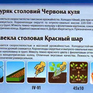 Ранньостиглий сорт столового буряка. Коренеплоди округлої форми, вирівняні, гладенькі, масою до 300 г, заглиблені у грунт наполовину. М’якоть темно-червона без кілець, солодка, соковита, дуже смачна. Даний сорт буряка чудово підходить для використання у свіжому вигляді, переробки і зберігання.