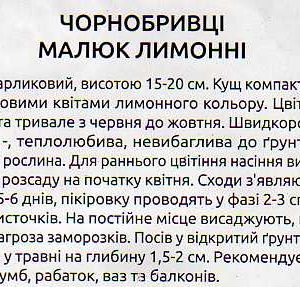 Однорічна трав’яниста рослина з тривалим періодом цвітіння. Рослина карликова, висотою 15 см. Квітки махрові, лимонного кольору. Насіння висівають у відкритий грунт в кінці травня — початку червня. Рослина невибаглива, швидкоростуча, світло- і теплолюбива, посухостійка. Рясно цвіте з червня і до самих заморозків. Чудово виглядає в групових посадках на клумбах, рабатках, квітниках, а також на передньому плані бордюрів. Ідеально поєднується з багатьма садовими квітами.