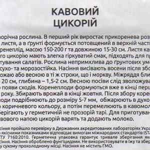 Двухлетнее растение. В первый год вырастает прикорневая розетка листьев, а в почве формируется утолщенный в верхней части корнеплод, массой 150-200 г и длиной 15-30 см. Листья кофейного цикория имеют слегка горьковатый вкус, подходят для приготовления салатов. Растение неприхотливое к почвенным условиям, засухо — и морозостойкое. Семена высевают осенью после уборки урожая или весной в те же сроки, что и морковь. Междурядья около 20 см, глубина -1,5-2 см. Весной посевы следует увлажнять до появления всходов. Корнеплоды формируются уже в конце первого года. Собирают урожай в конце октября. После сбора корнеплоды измельчают до размера 5-7 мм, обжаривают в духовке до коричневого цвета, а затем перемалывают в кофемолке. Хранят в герметичной непрозрачной таре. Для приготовления кофейного напитка цикорий варят и добавляют молоко.