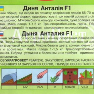 Ранній гібрид, від сходів до початку дозрівання плодів 65-70 днів. Плоди округлої форми, оранжево-жовті при повній зрілості з сітчастою шкіркою. М’якоть плода 1-1,5 кг. Транспортабельність гарна. Гібрид стійкий до хвороб і не вимагає застосування отрутохімікатів.