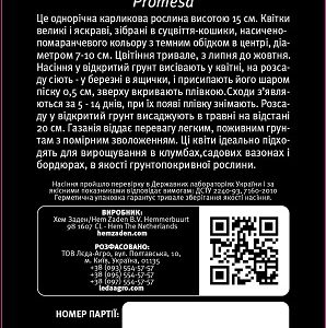 Газания Промеза Блестящая 5 шт – это растение, высотой 10-15 см является однолетним карликовым. Его большие и яркие соцветия, имеют , ярко огненного цвета имеют темноватый ободок в самом центре, диаметром 8-10 сантиметров. Цвет продолжается длительное время с июля месяца по октябрь. Высевают же газанию в открытую почву когда температура воздуха превысит 15 градусов, ориентировочно в апреле, а на рассаду её высевают в марте в кассеты и присыпают слоем песка 5 миллиметров, укрывают пластиковой или стеклянной крышкой. Растение всходит уже через 9-14 дней, после чего, крышку убирают. Рассаду высаживают на расстоянии 20 сантиметров друг от друга. Газания промеза любит легкие грунты, желательно обогащенные с равномерным увлаженением. Цветы отлично подходят для выращивания на подоконниках или балконниках, вазонах и бордюрах, в качестве почвопокровного растения.