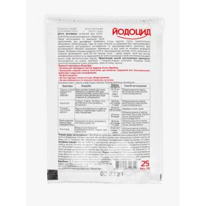 Засіб призначений для ефективного усунення та профілактики спектра бактеріальних, грибкових і вірусних захворювань овочевих культур, плодових дерев, ягідних кущів і винограду, а так само для дезінфекції приміщень різного промислового призначення. Діюча речовина: активний йод 0,25% Основні переваги препарату Йодоцід: Повний контроль всього спектру патогенів, включаючи збудників всіх бактеріальних, грибкових і вірусних захворювань Чи не фітотоксічен Відсутня обмеження по кількості обробок Ні період очікування збору врожаю після обробки Активна дія засобу настає відразу після обробки.