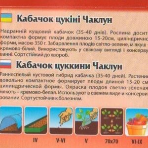 Надранній кущовий кабачок (35-40 днів). Рослина досить компактна формує плоди довжиною 15-20 см, циліндричної форми, масою 350г. Забарвлення плодів світло-зелене, м’якуш — кремово-білий. Використовують у свіжому вигляді і консервуванні. Сорт стійкий проти хвороб.