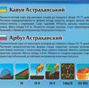 Ранньостиглий сорт, від масових сходів до першого збору 70-75 днів. Рослина середньоплетиста, форма плоду округла, шкірка зелена або темно-зелена з смужками. Смак чудовий. М’якоть щільна, червона, ніжна. Маса плоду 5-6 кг. Лежкість плодів хороша. Сорт транспортабельний, стійкий до антракнозу і борошнистої роси.