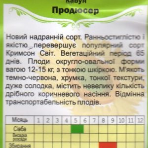 Новий надранній сорт. За ранньостиглістю і якістю перевищує популярний сорт Кримсон. Вегетаційний період – 65 днів. Плоди округло-овальної форми вагою 12 — 15 кг, з тонкою шкіркою. М’якоть темно-червона, хрумка, тонкої текстури, дуже солодка, містить невелику кількість дрібного коричневого насіння. Відмінна транспортабельність плодів.