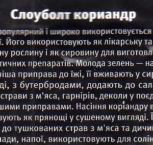 Дуже популярний і широко використовується в кулінарії. Його використовують як лікарську та ароматичну рослину і як сировину для виготовлення косметичних препаратів. Молода зелень — найпоширеніша приправа до їжі, її вживають у сирому вигляді, з бутербродами, додають до салатів, супів, страви з м’яса, гарнірів, деколи у поєднанні з іншими приправами. Насіння коріандру використовують як прянощі у сушеному вигляді. Їх додають до тушкованих страв з м’яса та дичини, у маринади, напої, використовують для соління.