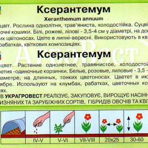 Сухоцвіт. Рослина однолітня, трав’яниста, холодостійка. Суцвіття — одиночні кошики. Білі, рожеві, лілові — 3,5-4 см у діаметрі, на довгих, тонких цвітоносах. Цвіте в липні-вересні. Використовують в квітниках, рабатках, квіткових композиціях.