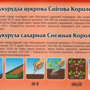 Середньоранній, супер солодкій сорт білозерної цукрової кукурудзи. Від сходів до технічної стиглості качанів 70-75 днів. Висота рослини 160-180см, качани конічно-циліндричної форми, довжиною 18-20см. Ряди зерен рівні. Зерно біле, широке, продовжене, середньої величини. Маса качана 230-250г. Товарність качанів висока. Ідеально підходить для заморожування та консервування.