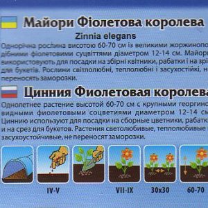 Новинка сезону. Однолiтня рослина висотою 60-70 см iз великими жоржиноподiбними фiолетовими суцвiттями дiаметром 12-14 см. Майори використовують для посадки на збiрнi квiтники, рабатки i на зрiз для букетiв. Рослини світлолюбні, теплолюбні і засухостійкі, не переносять заморозків.
