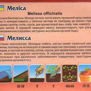 Рослина багаторічна. Молоді пагони, листя мають приємний запах лимона, тому їх використовують у свіжому вигляді як приправу до різних страв, зокрема салатів, супів, соусів, для ароматизації вин, соків, чаю, компоту та інших напоїв. В народній медицині мелісу використовують при різних захворюваннях (серцевих, застудних, внутрішніх органів тощо).