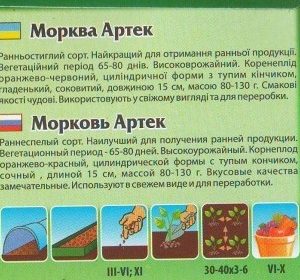 Ранньостиглий сорт. Найкращий для отримання ранньої продукції. Вегетаційний період 65-80 днів. Високоврожайний. Корнеплід оранжево-червоний, циліндричної форми з тупим кончиком, гладенький, соковитий, довжиною 15 см, масою 80-130 г. Смакові якості чудові. Використовують у свіжому вигляді та для пероробки.