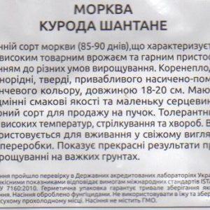Насіння Моркви Курода Шантане ― середньостиглий високоврожайний сорт. До технічної стиглості 95-115 днів. Коренеплід злегка конічної форми, довжиною 18-20 см, червоно-оранжевий, гладкий. М’якоть яскраво-помаранчева, солодка, хрустка, соковита. Найкращий сорт для зберігання, переробки і споживання в свіжому вигляді. Культура вимоглива до вологи та родючих рихлому грунті.