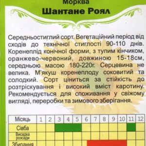 Морква Шантане Роял — середньостиглий, стресостійкий сорт типу Шантане. Відмінно підходить для культивування у різних кліматичних зонах України. Вважається найбільш урожайним різновидом сортотипу – при відповідному догляді за 100-110 днів можна отримати близько 9-10 кг смачних і красивих плодів з 1 кв.м.