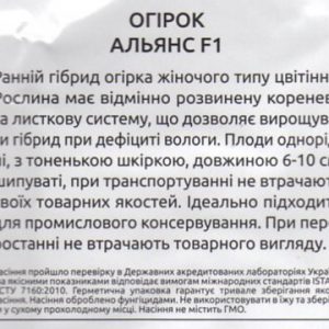 Новий ранній (40 днів) гібрид огірка жіночого типу цвітіння. Рослина має добре розвинені кореневу і листову системи, що дозволяє вирощувати цей гібрид при дефіциті вологи, дає рясний урожай в початковий період плодоносіння. Плоди однорідні, помірно шиповані, з тоненькою шкіркою, завдовжки 6-10 см, з відмінними смаковими якостями, при переростанні не крутяться і не втрачають товарного вигляду, транспортабельні. Співвідношення довжини до товщини (3,2:1). Ідеально підходять для промислової консервації.