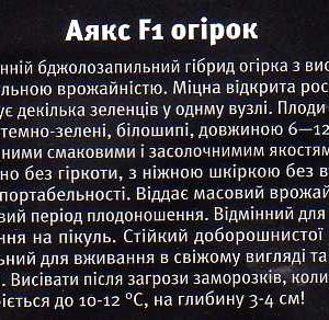 Огірок Аякс F1, бджолозапильний, 10шт (ЛА)
