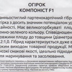 Новий самозапильний гібрид з дуже високим потенціалом урожайності. Його особливістю є висока регенеративна здатність і рівномірна віддача врожаю на протязі всього періоду вегетації. Плоди щільної консистенції, хрусткі, співвідношення довжини до діаметру 3,2:1. Придатний для консервації та засолювання. Зберігає красивий товарний вигляд навіть після тривалого транспортування. За результатами незалежної експертизи серед огірків голландської селекції гібрид Компоніст F1 визнали самим врожайним!