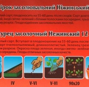 Пізньостиглий сорт, плодоносить на 55-60 день після сходів. Сорт довгоплетючий. Плід зелений, іноді світло-зелений з білими полосками посередині, трьохгранний в поперечному розрізі. Плоди відмінних засолювальних якостей.