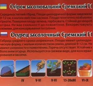 Середньостиглий гібрид. Плоди циліндричної форми завдовжки 9-12 см, з малим вмістом насіння. Плоди генетично позбавлені гіркоти. Поверхня плоду зелена, горбкувата. Стійкий до хвороб огірка. Не має схильності до пожовтіння. Використовують свіжими, для консервування та квашення.