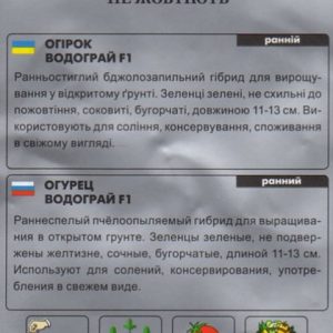 Урожайний ранньостиглий комахозапильний гібрид для вирощування у відкритому ґрунті. Рослина сильна та здорова, утворює апетитні крупногорбкуваті зеленці довжиною до 13 см, які не схильні до пожовтіння навіть при переростанні. Висівають після загрози заморозки на глибину 2-3см. Відзначається чудовим свіжим смаком та сильним ароматом. Використовують для свіжого споживання, а також для консервування.