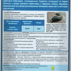 Патруль — высокоэффективный препарат для уничтожения моллюсков (улиток и слизней) на приусадебных территориях, спортивных зонах, в производственных, санитарно-бытовых, хозяйственных постройках (сооружениях) и других объектах. В местах массового отдыха, в подвалах, погребах, подсобных помещениях и в местах расположения пожарных емкостей и мусорных контейнеров.