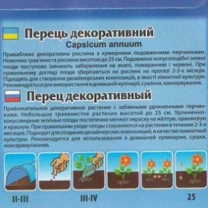 Приваблива декоративна рослина з кумедними продовженими перчинками. Невелика трав’яниста рослина висотою до 25 см. Продовжено-конусоподібні зелені плоди поступово змінюють забарвлення на жовті, помаранчеві і червоні. При правильному догляді плоди зберігаються на рослині на протязі 2-3-х місяців. Підходить для створення дизайнерських композицій, в якості кімнатної культури. Рекомендується для використання в домашній кулінарії, сушіння, консервування.