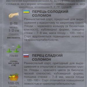 Середньоранній сорт для відкритого грунту і плівкових теплиць. Період від сходів до дозрівання плодів 95-110 днів. Рослина високоросла. Плоди кубовидні, гладкі, глянцеві. Забарвлення в технічній стиглості світло-жовте, в біологічній — червоне. Маса 120-200 г, товщина стінок 5,4-5,9 мм. Чудові смакові якості. Відрізняється підвищеною лежкістю і транспортабельністю. Універсальне використання.