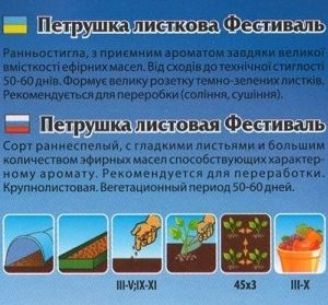 Ранньостигла, з приємним ароматом завдяки великої кількості ефірних масел. Від сходів до технічної стиглості 50-60 днів. Формує велику розетку темно-зелених листків. Рекомендується для переробки (соління, сушіння).