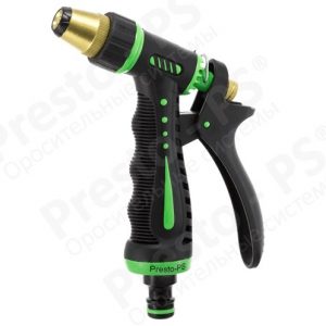 Пистолет поливочный – распылитель для полива, регулируемый, 4 режима. Полив от мощной точечной струи до мягкого тумана. Он очень практичен, благодаря наличию фиксатора и возможности плавно регулировать напор воды. Корпус защищен резиновым покрытием. Удобный и легкий в пользовании. Основные характеристики: Тип – пистолет для полива Режимы полива – 4 регулируемые Материал – металл Производитель — Presto-PS