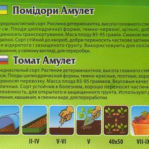 Ранньостиглий сорт. Рослина детермінантна, висота головного стебла 70 см. Плоди циліндричної форми, темно-червоні, щільні, добре витримують транспортування. Маса плоду 85-95 г. Смакові якості відмінні. Сорт стійкий до хвороб, добре витримує часткове затінення, для відкритого і захищенного ґрунту. Вживають у свіжому вигляді, використовують для соління, квашення, маринування, переробки.