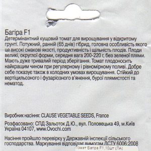 • растения компактное, с высокой силой роста, с мощной листвой пластиной, которая укрывает плоды и способствует вне корневому питанию, формирует около 100 плодов