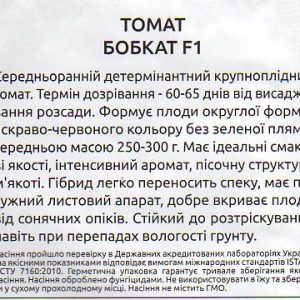 Середньоранній детермінантний великоплідний гібрид – 60-65 днів від висадки розсади. Легко переносить спеку, потужний листовий апарат добре покриває плоди від сонячних опіків. Плоди – округлої форми, яскраво-червоного кольору без зеленої плями, з глянцевим блиском, вирівняні протягом усього періоду збору. Середня маса – 250-300 г. Вміст сухої речовини – 5,5-6,2%. Ідеальні смакові якості, інтенсивний аромат, піщана структура м’якоті. Стійкий до розтріскування навіть при перепадах вологості ґрунту. Добре зберігається, придатний для транспортування великі відстані.