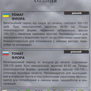 Раннеспелый сорт. Вегетационный период от всходов до начала созревания 105-110 дней. Куст низкорослый, высотой 40-50см. Плоды плоскоокруглой формы, красной окраски, массой 100-110г, отличных вкусовых качеств. Рекомендуется для выращивания в открытом грунте и под пленочными укрытиями. Используется для потребления в свежем виде, переработки и консервации.