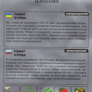 Пізньостиглий сорт. Вегетаційний період від сходів до технічної стиглості 115-125 днів. Кущ низькорослий, висотою 40-60см. Плоди плоскоокруглої форми, середньоребристі, золотисто-помаранчевого забарвлення, м’ясисті, масою 250-400г, відмінного смаку, з підвищеним вмістом бета-каротину. Вирощується у відкритому ґрунті та плівкових теплицях. Плоди переважно використовуються для споживання у свіжому вигляді.