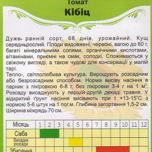 Ранньостиглий сорт. Вегетаційний період від сходів до стиглості 100-110 днів. Плоди видовжено-сливовидної форми, щільні, темно-червоного забарвлення, масою 60-80г, гарного смаку. Рекомендується вирощувати у плівкових наметах для отримання ранньої товарної продукції. Сорт ціниться за добру транспортабельність. Використовують для споживання у свіжому вигляді, переробки та цільноплідного консервування.