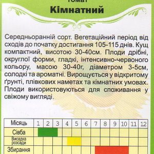 Середньоранній сорт. Вегетаційний період від сходів до початку достигання 105-115 днів. Кущ компактний, висотою 30-40см. Плоди дрібні, округлої форми, гладкі, інтенсивно-червоного кольору, масою 30-40г, діаметром 3-5см, солодкі та ароматні. Вирощується у відкритому ґрунті, плівкових наметах та кімнатних умовах. Плоди використовуються для споживання у свіжому вигляді.