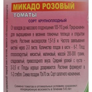 Середньопізній сорт. Вегетаційний період від сходів до початку плодоношення 130-140 днів. Кущ високорослий, висотою 150-250см. Плід плоско, великий, м’ясистий, щільний, рожевого забарвлення, масою 300-600г, відмінних смакових якостей. Плоди довго зберігаються. Використовуються для споживання у свіжому вигляді.