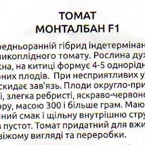 Середньоранній гібрид індетермінантного великоплідного томату. Рослина дуже потужна, на кисті формує 4-5 однорідних товарних плодів. За несприятливих умов не втрачає зав’язь. Плоди округло-плескаті, злегка ребристі, яскраво-червоного кольору, масою 300 г і більше грам. Мають відмінний смак та щільну внутрішню структуру без порожнеч. Томат придатний для вживання у свіжому вигляді та переробки.