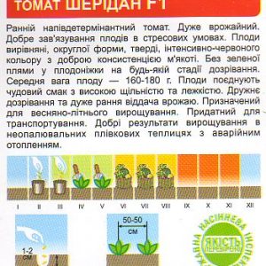 Гібрид раннього напівдетермінантного томата. Призначений для вирощування у весняно-літньому обороті, добре переносить стресові умови.