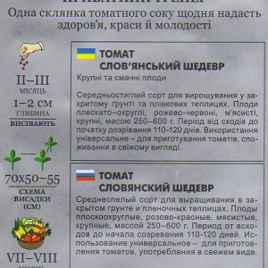Среднеспелый крупноплодный сорт. Вегетационный период от всходов до начала плодоношения 110-120 дней. Куст мощный, высотой 150-180см. Плоды плоскоокруглой формы, ребристые, розово-красной окраски, массой 250-600г. Выращивается в открытом грунте с применением временных пленочных укрытий. Сорт ценится за отличные вкусовые качества и высокую урожайность. Плоды используются для потребления в свежем виде и переработки.
