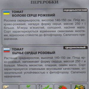 Помідори Волове Серце рожевий, 0,1г (S)