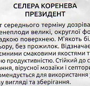 Сорт среднего срока созревания. Корнеплоды крупные, округлой формы с гладкой поверхностью. Мякоть белого цвета, без прожилок. Отмечается приятными вкусовыми качествами и высокой производительностью. Устойчив к стрелкованию, вирусной мозаике и септориозу. Рекомендуется для использования в свежем виде и хранения.