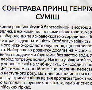 Сон-трава Принц Генріх (Pulsatilla vulgaris). Загадковий ранньоквітучий багаторічник, висотою 25-30 см. Квіти великі, з ніжними пелюстками фіолетового, червоного, білого забарвлень та яскраво-жовтою серединою. Після цвітіння не втрачає декоративність. Особливу чарівність рослині додає його ніжно-сріблясте опушення, що покриває стебла та листя. Морозостійка рослина, найкращого розвитку досягає на місцях з легким затіненням та родючими, легкими ґрунтами, без застою води. У посушливий період рослини поливають і мульчують перегноєм або торфом. Насіння у відкритий ґрунт висівають у травні – на початку червня на глибину 1-1,5 см. Оптимальна температура для проростання 20-25 °С. Сходи з’являються через 3-4 тижні. На постійне місце рослини пересаджують весною наступного року. Цвітіння розпочинається на 2-3 рік і триває з кінця квітня протягом трьох тижнів. Органічно виглядає в групових посадках, на альпійських гірках та кам’янистих садах.